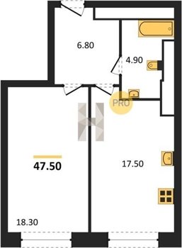 Площадь от 44.8 м2