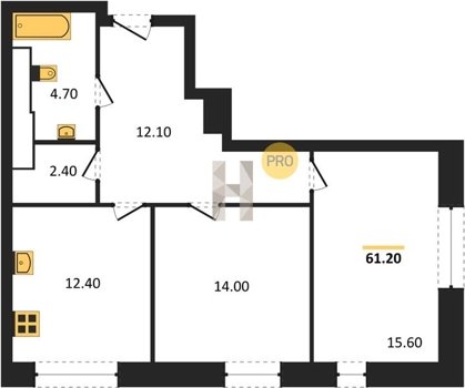 Площадь от 61.2 м2
